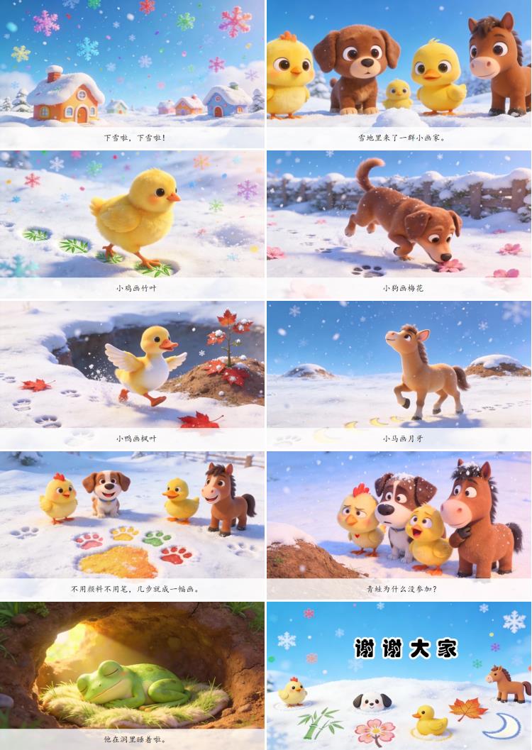 大家好,我是众晨星,今天我朗诵的是《雪地里的小画家》,