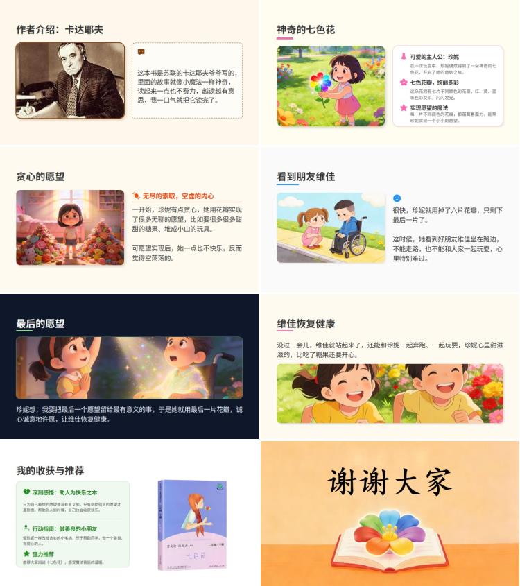 同学们,《七色花》真的很好看,推荐大家也去读一读,感受魔法背后的温暖。