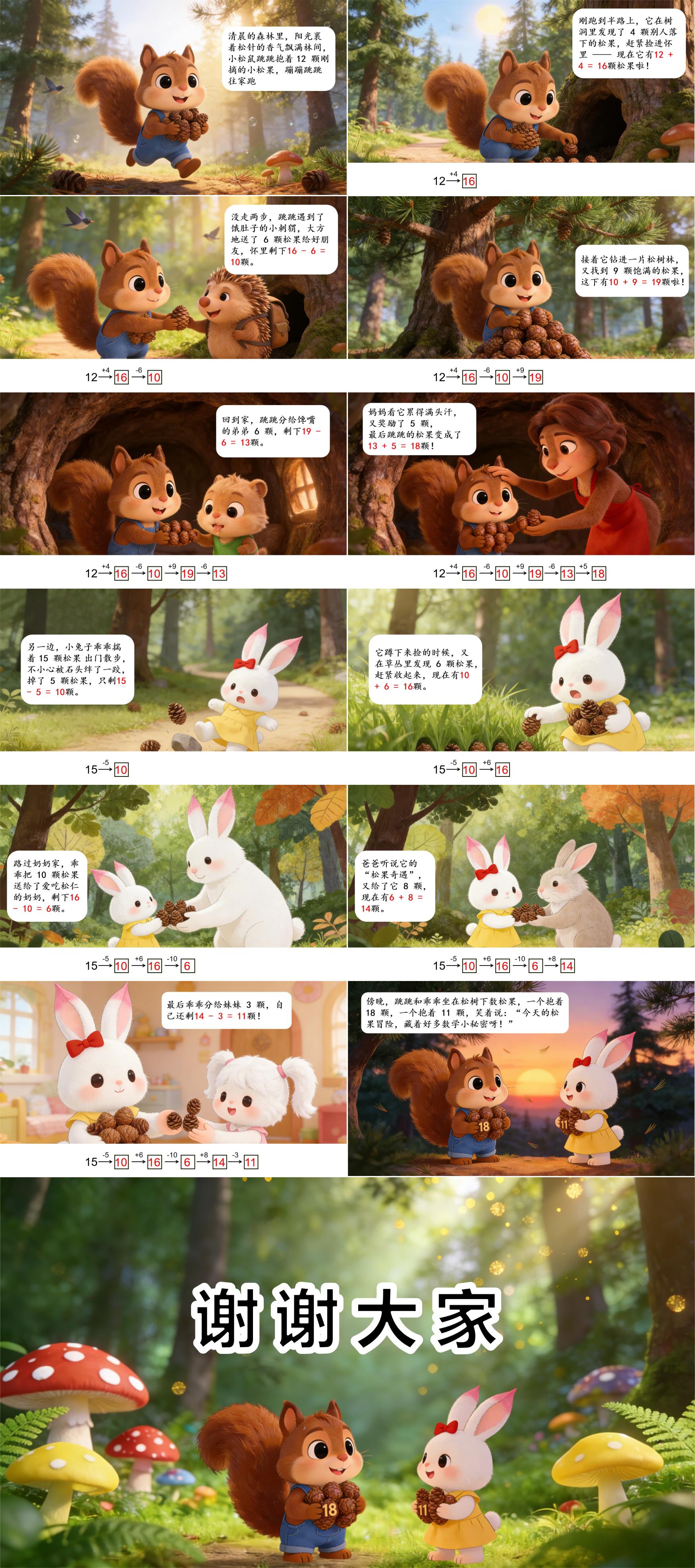 大家好,我是众晨星,很高兴和大家一起分享,今天我要分享的数学小故事是《松鼠和兔子的松果大冒险》,