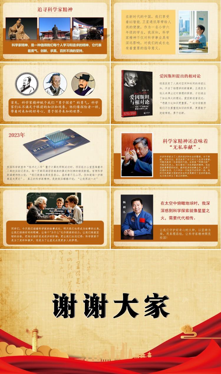 今天,我怀着激动的心情,站在这里,与大家分享我对科学家精神的理解与感悟。科学家精神,是一种值得我们每个人学习和追求的精神,它代表着勇气、创新、求真.百折不挠的坚持。在新时代的中国,我们享受着AI智能.卫星通讯等带给人类的便捷,作为一名小学六年级的学生,我深知,科学家精神不仅对科学事业具有深远影响,对我们的成长也有着重要的指导意义。