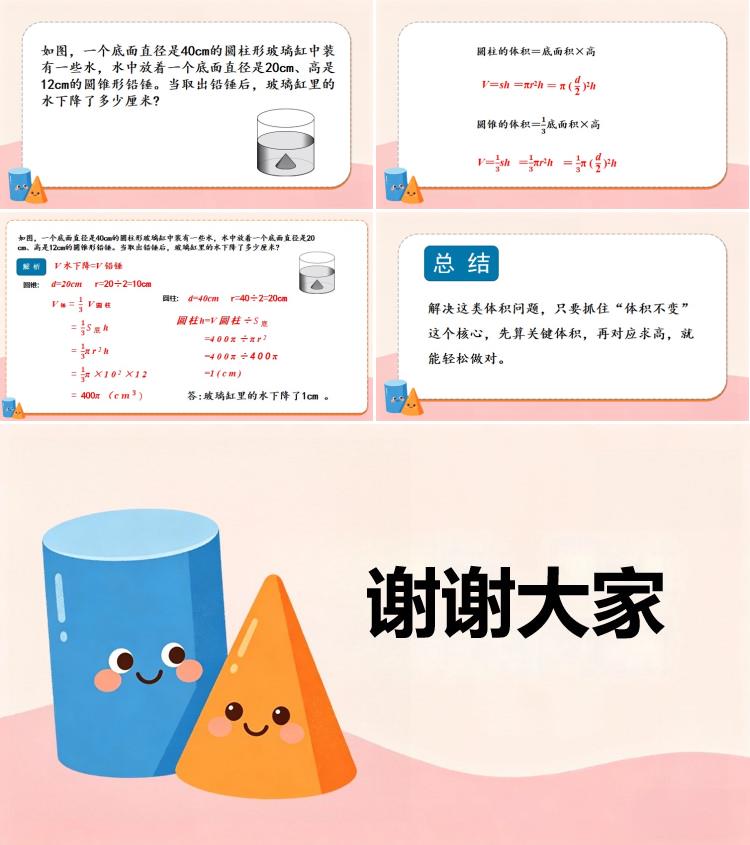 同学们,解决这类体积问题,只要抓住“体积不变”这个核心,先算关键体积,再对应求高,就能轻松做对。