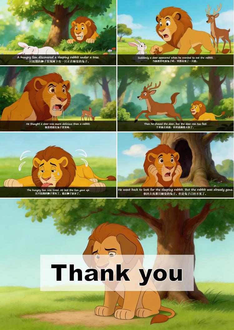 一只饥饿的狮子发现树下有一只正在睡觉的兔子。