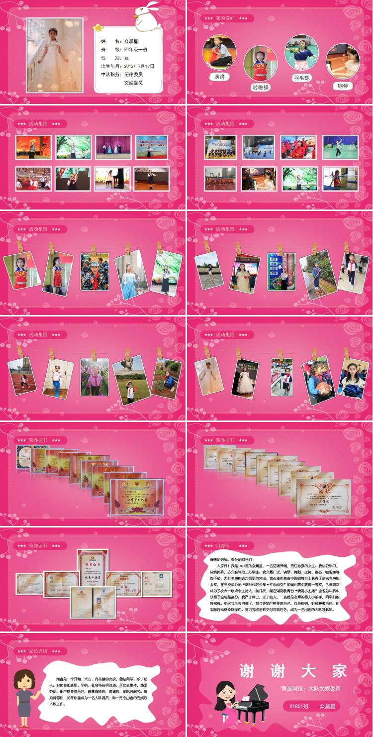 众晨星PPT首页 > 代做 > 弹钢琴女孩竞选PPT模板