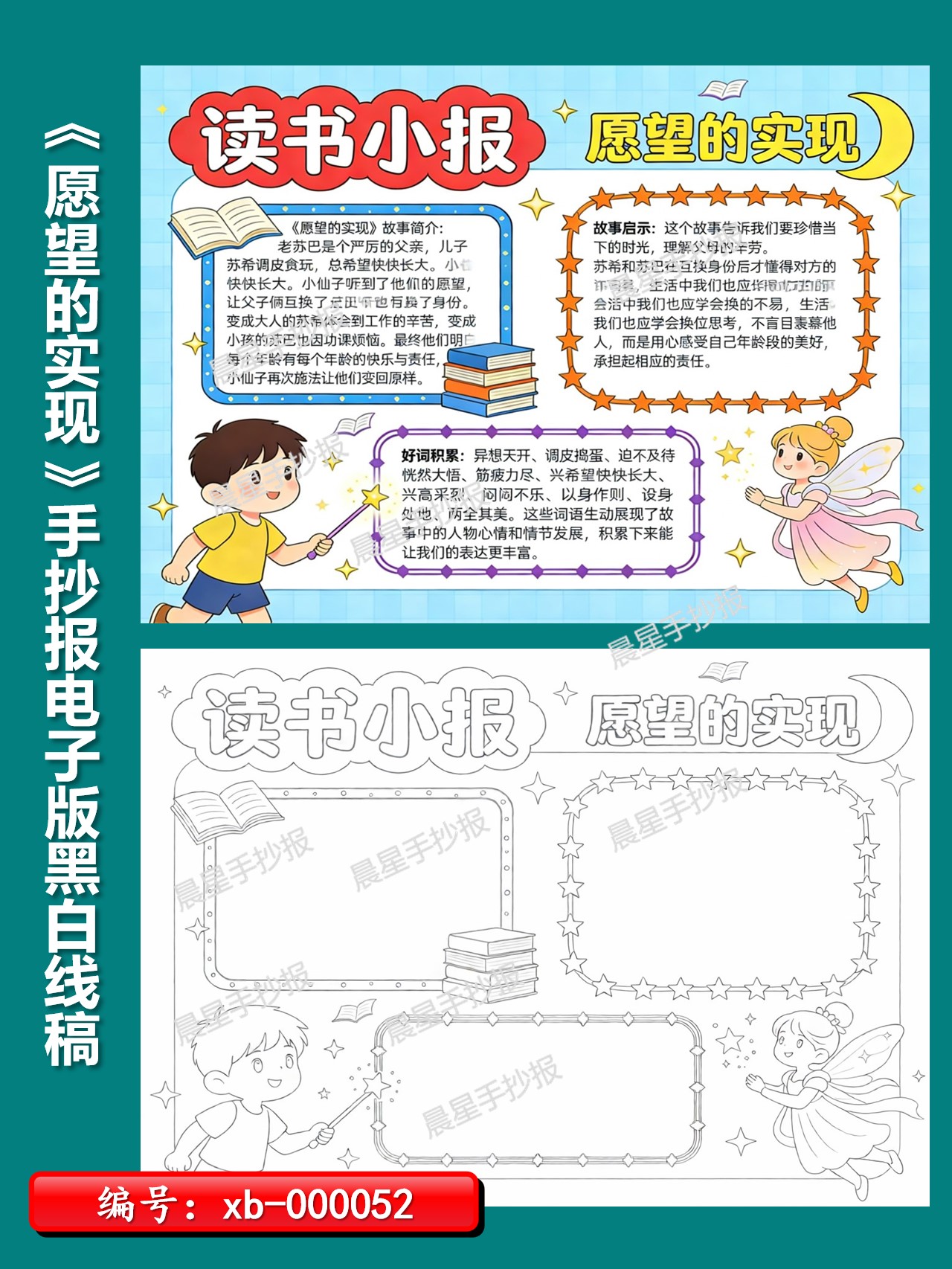 众晨星PPT首页 > 小报/手抄报 > Xb-000052 《愿望的实现》读书小报