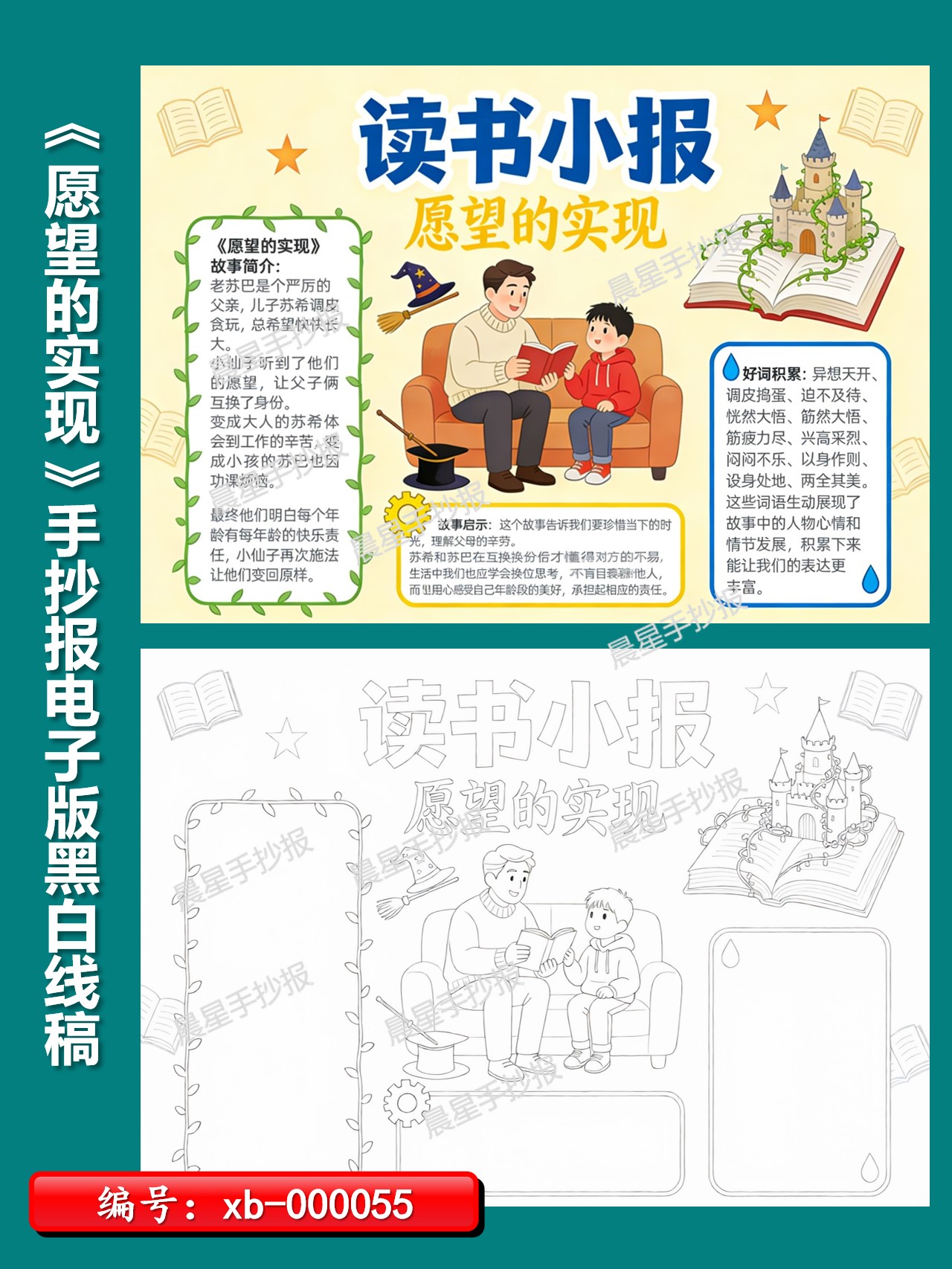 众晨星PPT首页 > 小报/手抄报 > Xb-000055 《愿望的实现》读书小报