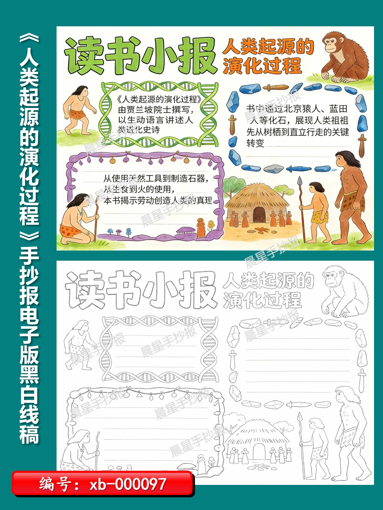 众晨星PPT首页 > 小报/手抄报 > Xb-000097 《人类起源的演化过程》读书小报