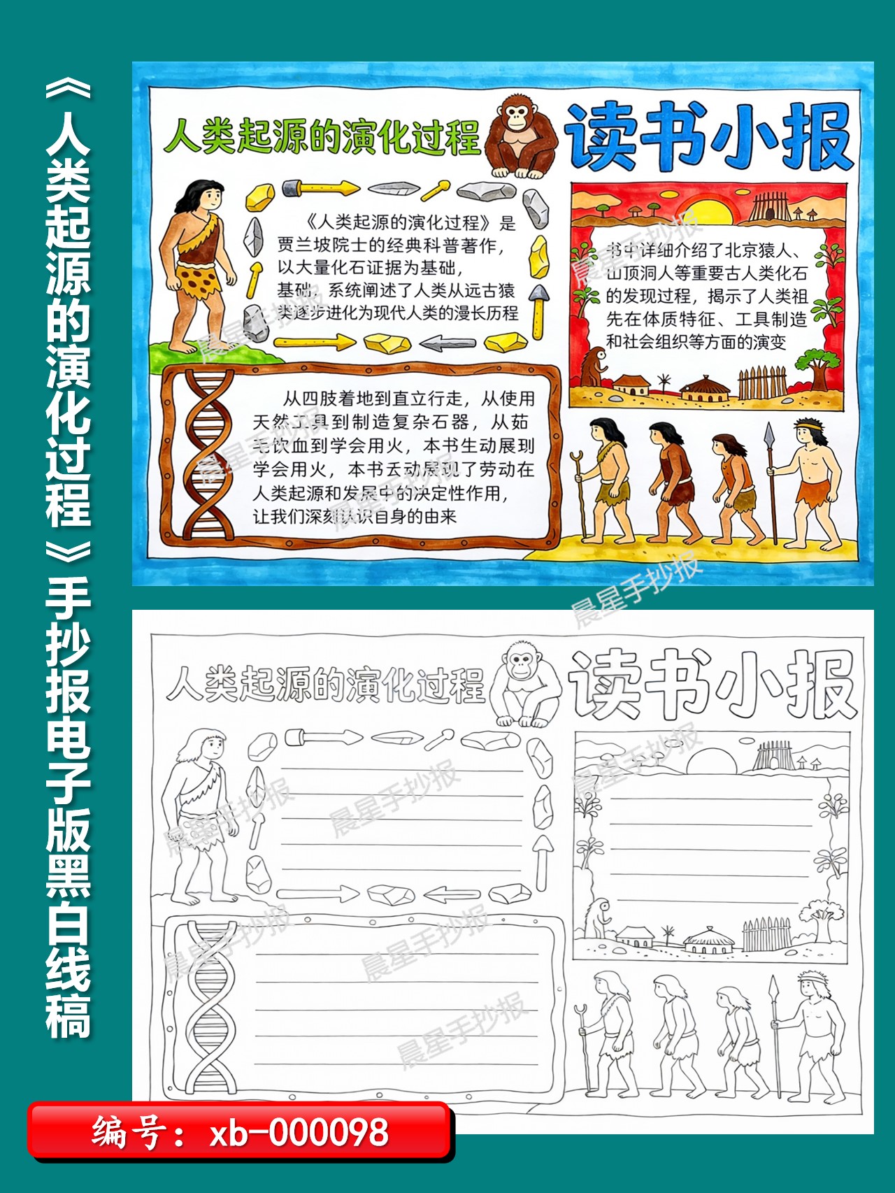 众晨星PPT首页 > 小报/手抄报 > Xb-000098 《人类起源的演化过程》读书小报