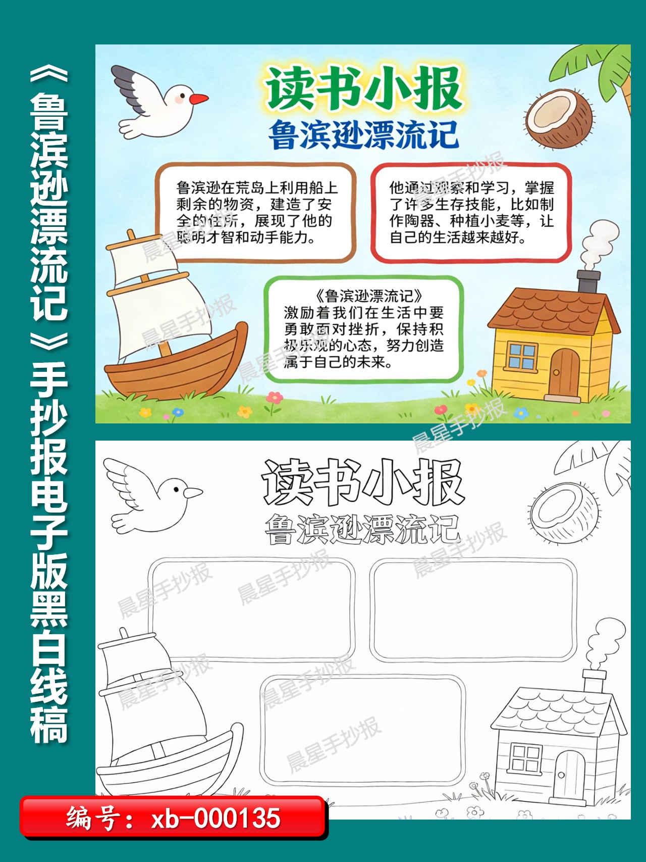 众晨星PPT首页 > 小报/手抄报 > Xb-000135 《鲁滨逊漂流记》读书小报