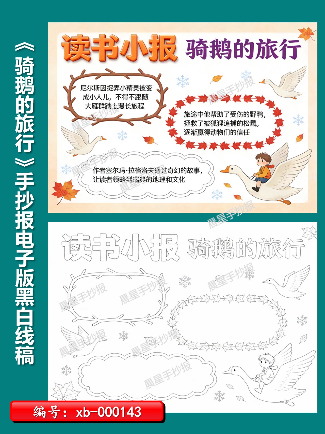 众晨星PPT首页 > 小报/手抄报 > Xb-000143 《骑鹅的旅行》读书小报