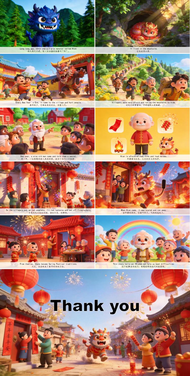 很久很久以前,有一头凶猛的怪兽叫“年”。